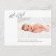 Att välkomna en ny bebis till världen är en glädjefull tilldragelse. Denna moderna, minimalistiska 'Hello World!' för nyfödda. Kortet innehåller ett sött foto av den nyaste familjemedlemmen tillsammans med statistik om det nyfödda barnet, dvs. namn, födelsedatum och vikt. En perfekt skatt för att markera starten på en liten enas liv