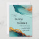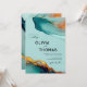 En inbjudan till fallbröllop som innehåller en målad vattenfärgsscen i abstrakt med en guld bläck pour-effekt (guld är en digital effekt, inte en riktig folie!) i orange och teal och modern kalligrafi. Klassen och eleganten, enkel och modern, det är ett underbart val för ett fallstrandbröllop - eller helt enkelt ett höstbröllop bröllop för ett par som kärlek höst färger och modernt utformat.