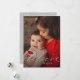 Skicka önskemål till din familj och dina vänner med det här minimalistiska fotokortet. Ett foto på framsidan och blommönstret på baksidan, åtföljt av vackert, vitt skript kalligrafi. Det moderna och minimalistiska stil kommer verkligen att låta dina familjefotografier skina. Om du vill ha en annan bakgrund i färg kan du enkelt ändra den genom att öppna ytterligare alternativ för anpassning.
