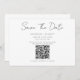 Minimalistisk QR-kod för skript sparar datumet. Anpassa denna minimalistiska svartvita design med dina personuppgifter.