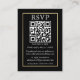 Modern minimalistisk enkel Bröllop OSA-kort med din QR-kod. Guld Ram med svart bakgrund. Foto bakåt.