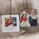Denna minimalistiska röda par keepsaké-fotokeramiska ornament är perfekten enkel dekoration i Julgran. Utformningen har klassisk röd och vit typografi parad med ett rustiskt skript med elegant och handskrivet stil. Anpassa framsidan av den här nyckelprydnaden med ett foto, namn och året. Anpassa baksidan med ett annat foto.