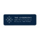 Lägg till en anpassningsbar i helgdag med dessa minimalistiska returetiketter för snöflingor. Adressetiketterna har en vit snöflinga på en marin blå bakgrund eller färg efter eget val. Anpassa etiketterna genom att lägga till ditt namn och adress i moderna vita bokstäver. Adressetiketterna för snöflummen är perfekt till använda med helgdagskorten, julfest inbjudan och daglig korrespondens.