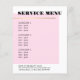 Elegant malldesign för tjänstemenyer för skönhetsrelaterade yrkesutövare. Enkel elegant design med falskt guldlinje och ros/vit bakgrund. Ren elegant design. Om du behöver hjälp för att anpassa denna produkt, vänligen kontakta oss.