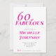 En vacker, modern minimalist 60-års inbjudan som du kan anpassa för en fantastisk sextioårsfirande. Orden "Sextio och fantastisk" är satta med populär rosa typografi. Ändra namn och festdetaljer för en verkligt unik inbjudan.