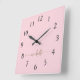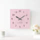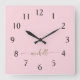 Flickigt enkel minimalistisk rosé monogramnamn guldskrift anpassad personlig fyrkantig väggklocka. Dessa design har ditt förnamn i en vacker handskriven svansfont med guld på ljusrosa eller rosé bakgrund. Så enkel att anpassa. Fin stilren och feminin husvärmegåva, även till födelsedag, bröllopsfest, mors dag, bröllop, 16-årsfest och baby shower, examen och den är till flickan som älskar unika och stilrena saker.
