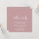 Modern bröllopsinbjudan med en enkel design med namn i en elegant-skripttypografi och din händelseinformation i ett minimalistiskt sans serif-teckensnitt. All inslag är i vitt över en dammig rosa i ro. Den här chicens bröllopsinbjudan fungerar bra för vår eller sommar bröllop.