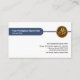 Ett blått skydd förstärks av en vit, rundad kolumn nära överkanten. Här ljuger du ditt prestigefyllda namn och din arbetstitel med en logotyp för guld-arbetskraft i motsatt riktning. Mot basen är namn och ett sloganalternativ för att sprida dina tjänster.