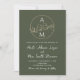 Elegant, modern, boho, minimalistisk, enkel bröllopsinbjudan med grönt med ett unikt monogram med OSA med hand plockade par love birds och QR-kod längst bak.