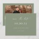 Minimalistisk Sage-Grönt, bröllop-fotot sparar datumkortet. Vit typografi med sage grönt bakgrund färg. Ett foto med ett vågrät på baksidan.