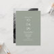 En modern minimalistisk design med ditt speciella datum och bröllopsdetaljer i klassisk, chic typografi på en sagegrön bakgrund. Lägg till ditt favoritfoto på baksidan. Designad av Thisisnotme