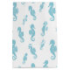 Ren presentbag med sjöhästmönster i mjuka blå toner och enkla marina former på en ljus bakgrund. Minimalistisk, lugnande och modern oceanestetik. Perfekt för kustälskare, barn och sjöfartsdesignentusiaster.