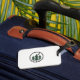 Missa aldrig dina väskor med denna stilrena minimalistiska skogstikett. Med en ren cirkulär emblem av tallar och en halvmåne är denna design perfekt för naturälskare, vandrare och världsresenärer. Tålig och lätt att upptäcka, den lägger till en touch av vildmarksäventyr till din resväska eller ryggsäck. Idealisk för din nästa utomhusresa eller stugsemester.