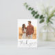 Uttryck din tacksamhet med det här budgetvänliga, enkla fotokortet, som innehåller elegantens svarta skript "Tack" med namn, bröllop datum och foto på framsidan. Den enkla vita bakgrunden skapar ett slimmat och modernt utseende. Anpassa baksidan med ett uppriktigt budskap för att tacka dina gäster.