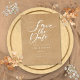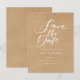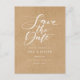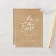 Detta minimalistiska spara datum-kort har en elegant skript spara datum ovanför dina detaljer som är satta i elegant typografi på en lantlig kraftbakgrund. Designad av Thisisnotme