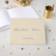 Ett modernt, lätt gräddfaux linen personlig bröllop gäst bok, med ett trendig unikt skrivmanus för contemporary för den moderna minimalisten. Bröllop gäst som undertecknar keepsaké bok för att hälsa dina gäster välkomna till bröllopsmottagningen, eller en möhippa, eller förlovningsfest, för att vara din keepsaké för alltid. Om du vill ändra färgerna på typsnitt eller stil, efter att du anpassat dig genom att klicka på "redigera ytterligare", markerar du texten och ser paletten färg på högerna och teckensnittsalternativen. Om du vill ändra färgerna på typsnitt eller stil, efter att du anpassat dig genom att klicka på "redigera ytterligare", markerar du texten och ser paletten färg på högerna och teckensnittsalternativen.