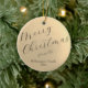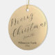 Skaffa den här manuset som en gåva till dina vänner och din familj. Denna minimalistiska typografi har en guld-ton (non-foil) och ett svart färg-plan. Lägg helt enkelt till information, lägg till så många dekorationer som du behöver i din vagn och sedan ge ut dem som gåvor den här julhelgen. Minimalistisk skripttypografi God jul keramisk prydnadsdesign på semesterdagar | Melissa Patton - Designer