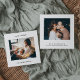 De här enkla och minimalistiska julsedlarna innehåller två av dina favoritfoton, tillsammans med namn och ord i svart skrivmaskin, med "merry + bright"-helgdagskortet. Du kan ändra detta till valfri hälsning.