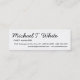 Minimalistisk slim i enkelt vitt, modernt skript mini visitkort