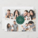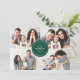 Modern helgdag-kort med fyra fotokollage med en enkel vit snöflinga i mitten inuti en grönt cirkel ram. Anpassa det minsta julkortet genom att lägga till en anpassningsbar hälsning och ditt namn. Kortet återgår till visningen av ett vitt snöflingande mönster på gröntens bakgrund.