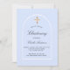 En ljusblå bakgrund och en ljusblå ram. Personalisera och en namn och ceremonidetaljer. Elegant-handskript i stil. Bakåt: ljusblå bakgrund.