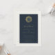 En minimalistisk tolkning av solrosbröllopsstil, denna marinblå inbjudan har en ren, centrerad layout med bara några få etsade solrosillustrationer som ramar in texten. De varma, gyllengula detaljerna ger en glad men ändå elegant känsla, vilket gör den idealisk för rustika, avslappnade eller intima bröllop. Slick serif-typografi och förenklade blomsteraccents håller designen raffinerad och enkel att anpassa. Tryckt guldeffekt – ingen metall eller folie.