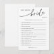 Vem känner till Bride Best? Möhippa spelkort med minimal utformning. Anpassa med dina frågor om du vill.