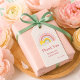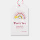 Lägg till en charmig touch till dina baby shower-favoriter med denna rosa regnbåge baby shower tack-kort. Med en söt handritad regnbåge, sol och hjärta-illustration med texten "Tack" är denna anpassningsbara presenttagg bunden med ett band och stiliserad i en blommig, feminin miljö. Perfekt för att dekorera baby shower-presenter, festerfavoriter eller minnessaker, denna personliga baby shower-tagg ger värme och kärlek till din fest. Idealisk för flickors baby shower med mjuka pastell- och rosa teman.