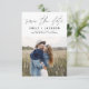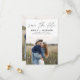 Modern och Elegant Handskriven Skript Foto Spara Datum Bröllopskort. Spara datum inbjudan kortet innehåller en chic och stilren typografi med en enkel och minimalistisk design på en vit bakgrund som du kan lägga till din anpassade förlovningsfotografi bild till.