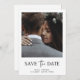 Detta enkla och eleganta svart-vita bröllop spara datum-kort har ditt personliga foto på framsidan, med en blandning av modern handskriven skrift och fet serif-text. Det finns utrymme för ytterligare information på baksidan, inklusive er bröllopswebbplats.