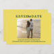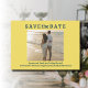 Minimalistisk stil | Lemon Chiffon-bakgrund och mörk skiffergrå retro skrivmaskinsfont och foto Bröllop Spara datum.