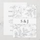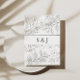 Meddela din speciella dag med denna minimalistiska svarta blommande bröllopsinbjudan, med elegant botanisk konturteckning och en ren modern layout. Designad för par som älskar tidlös sofistikation, denna dubbelsidiga bröllopsinbjudan innehåller en förfinad framsidesdesign och en stilren baksida med parets anpassade initialer för en personlig touch. Perfekt för svart-vita bröllopsteman, moderna firanden och klassiska blommiga brevpappersserier. Helt anpassningsbar med namn, datum, lokal och formulering för att skapa en polerad och sammanhängande inbjudan.