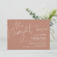 Planerar man en bröllop-dagsljö firande med den blivande Briden och Groom, före deras högtid? Inbjudan de gäster som har denna elegant minimalism Bröllop Rehearsal Dinner Inbjuation Card, i rustiska terracotta örhänta. Lägg till information om repetitionsmiddagen i matchande teckensnitt/bokstäver. #TeeshaDerrick