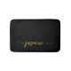 Flickaktigt Feminint Minimalistiskt Enkelt Rent Svart Och Guld Monogram Namn Signatur Script Anpassad Personlig Badrum Badmatta. Denna design har ditt förnamn i en snygg handstils font med svans på svart och guld bakgrund. Dessa är lätta att anpassa. Jätte snyggt feminint husvärmegåva, även för födelsedag, bröllop, 16-årsfest, bröllopsfest, möhippa och Det är för tjejen som gillar enkla rena saker.