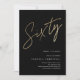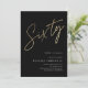 Modern minimalistisk 60-års inbjudan med stilrent falskt guld folie nummer handskriven skrift Sixty och din festinformation i klassisk serif-teckensnitt på svart bakgrundsfärg, enkel och elegant, bra överraskning vuxen milestone födelsedagsinbjudan för män och kvinnor. den svarta bakgrundsfärgen kan ändras till valfri färg.