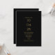 En modern minimalistisk design med ditt speciella datum och bröllopsinformation i klassisk, chic guldtypografi på svart bakgrund. Med all din speciella information om bröllopsdagen på baksidan, inklusive din RSVP, boende och ytterligare information. Designad av Thisisnotme