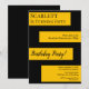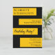 Denna eleganta svarta och gyllene födelsedagsinbjudan är perfekt för en modern födelsedag. den enkla designen har elegant svart kalligrafi på gyllene ränder på en svart bakgrund.