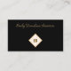 Ett enkelt, elegant, minimalistiskt affärskort för en designerare i insida har guld på en svart bakgrund, med en diamantformad bricka och ett monogram. Baksidan är guld, med svart text. Skulle kunna arbeta för en rad olika företag, bland annat ekonomi, skönhet, stil, datorer osv.