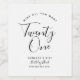 Minimalistisk "tjugoen - Vin All you want"-etikett för vin flaska i svart och vitt med modern, chic och elegant handskriftstypografi för stil. All text är anpassade. Anpassa med ålder, namn, födelseår och kort hälsning. Perfekt 21:a födelsedagspresent eller partiförmån.