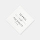 Lägg till lite elegans till din mottagning med bröllop-servetter från personlig som innehåller parets namn, bröllop-datum och en modern blandning av skript och serif-typografi. Designat i ett minimalistiskt svart och vitt stil är dessa blöjor perfekt för cocktail-timmen, bord, dessertvisningar eller station. En enkel men sofistikerad detalj som förbättrar din bröllop-dekoration och skapar en polerad syn på firande.