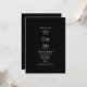 En modern minimalistisk design med ditt speciella datum och bröllopsdetaljer i klassisk, chic typografi på svart bakgrund. Med all din speciella information om bröllopsdagen på baksidan, inklusive din RSVP, boende och ytterligare detaljer. Designad av Thisisnotme©