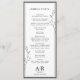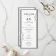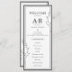 Hjälp dina gäster genom er ceremoni med detta minimalistiska svarta och vita bröllopsprogram, designat med ren typografi och en tidlös monokrom layout. Detta eleganta programblad erbjuder en tydlig och modern presentation av er ceremonis detaljer – inklusive tidslinjen för bröllopet, brölloppsdeltagarnas namn och speciella tack.