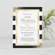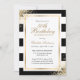 Elegant svart och guld födelsedagsinbjudan med födelsedagsinlagor i guld ram mot en svart och vit bakgrund med guld konetti. Svart och guld födelsedag. Svart och vit födelsedag. Anpassa den här mallen enkelt till vilken födelsedagsfest som helst.