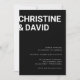 Det här är en dubbelsidig minimalistisk svart-vit bröllopsinbjudan med moderna feta bokstäver på framsidan och baksidan. All text är redigerbar, så du kan ändra formuleringen enkelt. Det är möjligt att ändra bakgrundsfärgen, klicka bara på "Anpassa ytterligare". Matchande bröllopsfodral, svarsbrev och semesterpapper finns också tillgängliga, kolla in "Svart-vit Bröllopsdekor med feta bokstäver" kollektionen i min butik Wowweds.