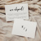 Minimalistiskt svart & vitt script bröllopsutflykt-annonsering. Anpassa med ditt meddelande om utflykten till familj och vänner på framsidan och lägg till brudens och brudgummens initialer på baksidan av kortet.