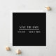 Minimalistisk Spara datumet med en dramatisk fläck. Platt kvadratisk korta med svart bakgrund och vit text. Elegant med utrymme för anpassningsbar QR-kod på baksidan.