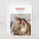 Fira säsongen av tacksamhet med detta moderna minimalistiska Thanksgiving-kort. Med det djärva ordet ”Tacksam!” högst upp och ett stort anpassningsbart familjefoto är denna design både enkel och slående. Anpassa med ditt namn eller familjedetaljer för att skapa en minnesvärd present att skicka till nära och kära. Perfekt för att dela värme, kärlek och tacksamhet denna Thanksgiving.