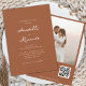 Överraska dina kära med den här elegant bröllop inbjudan, med terracotta-rosterbakgrund, anpassningsbar foto, text och fyrkantig kod efter eget val. Lägg enkelt till dina egna uppgifter genom att klicka på alternativet "anpassa".
