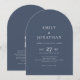 Minimalistisk text QR-kod Dusty Navy Arch Bröllop Inbjudningar