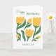 Fira hennes speciella dag med detta eleganta, handritade tulpanfödelsedagskort. Designat i en fräsch skandinavisk-minimalistisk stil, har detta kort livfulla gula blommor som ger en glad botanisk känsla till alla födelsedagsmeddelanden.